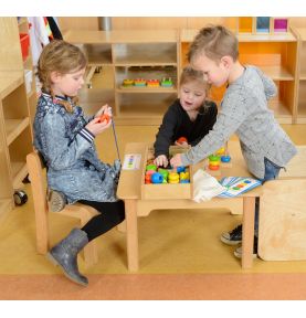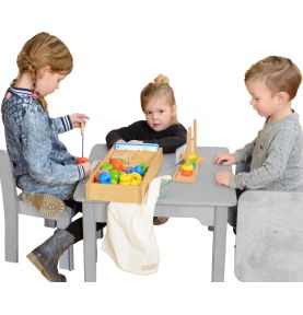 Zestaw można łączyć z pozostałymi dwoma zestawami Masterkidz, dzięki czemu zabawa staje się jeszcze bardziej urozmaicona. Drewniane elementy są trwałe i ekologiczne, a sznurowanie wspiera rozwój motoryki małej, koncentracji oraz koordynacji wzrokowo-ruchowej.