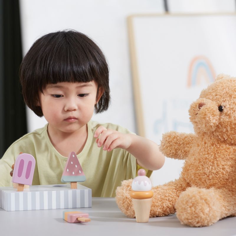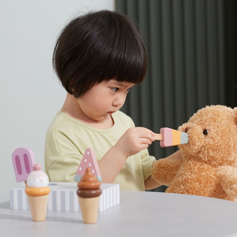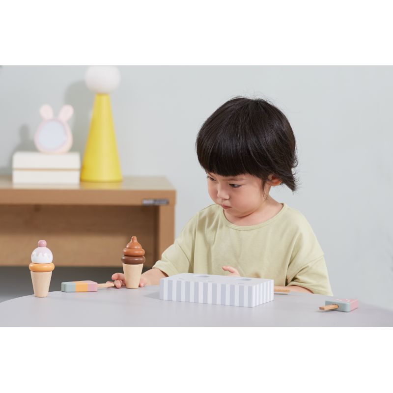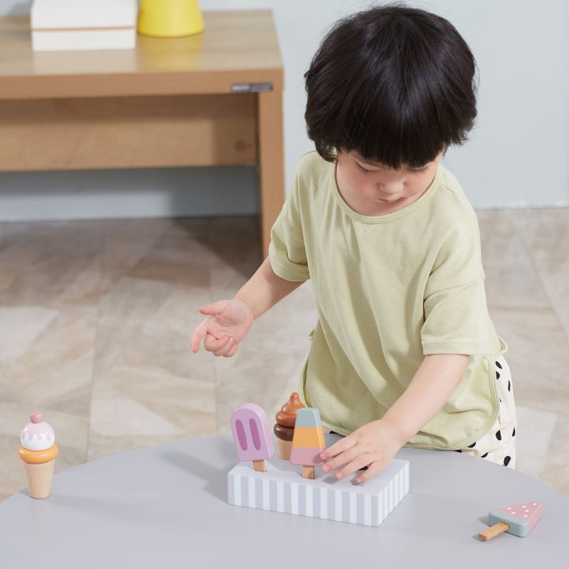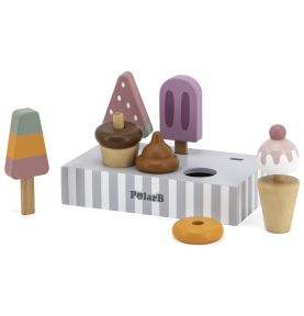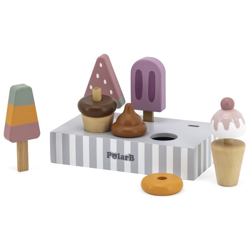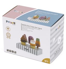 Zabawka zachwyca jakością wykonania, dbałością o detale i pastelową kolorystyką charakterystyczną dla linii PolarB. Drewniane lody staną się doskonałym uzupełnieniem dziecięcej kuchni lub kącika tematycznego, umożliwiając dziecku kreatywne odgrywanie ról i rozwijanie słownictwa. Całość wykonano z lakierowanego drewna i pomalowano nietoksycznymi, bezpiecznymi farbami.