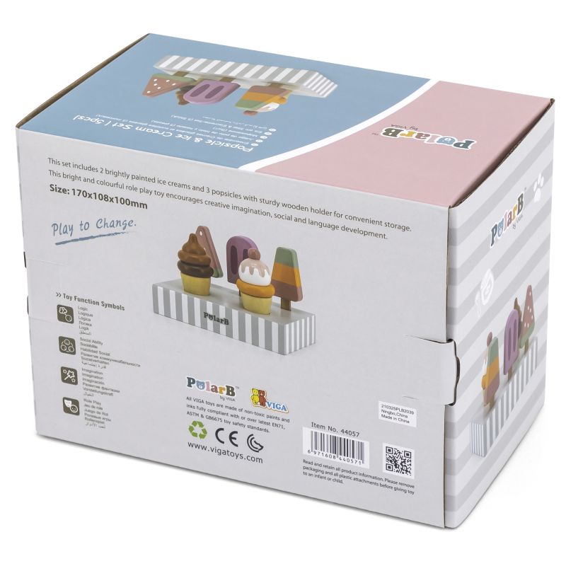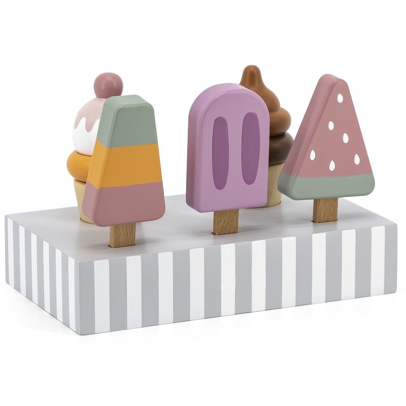 - W zestawie: 5 różnych rodzajów lodów na drewnianym stojaku