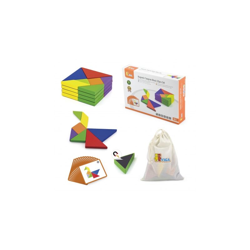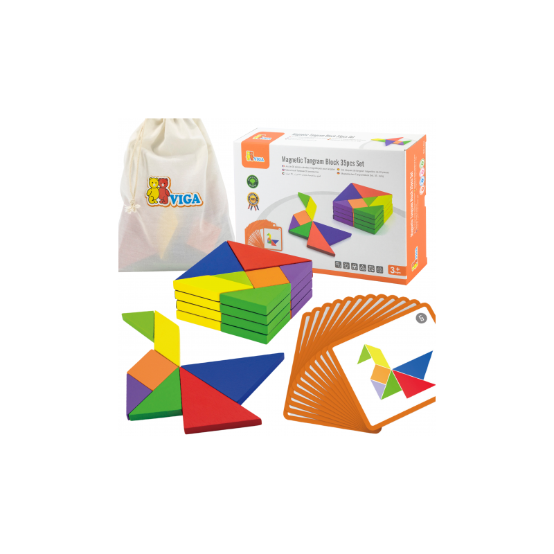 Tangram Viga Toys rozwija logiczne myślenie, kreatywność i koncentrację dziecka, ucząc przy tym rozpoznawania kolorów i kształtów.