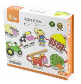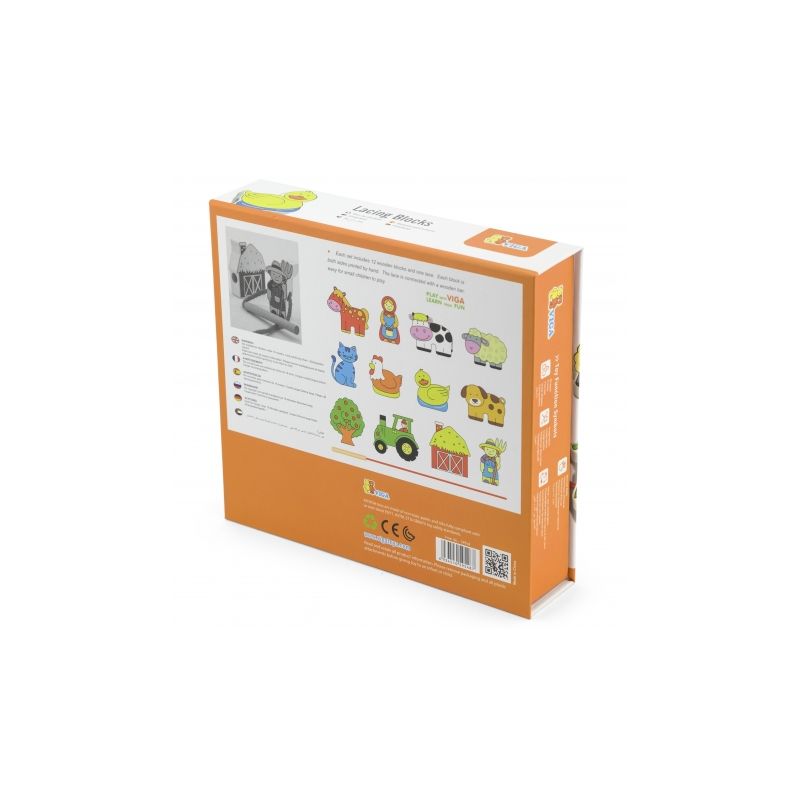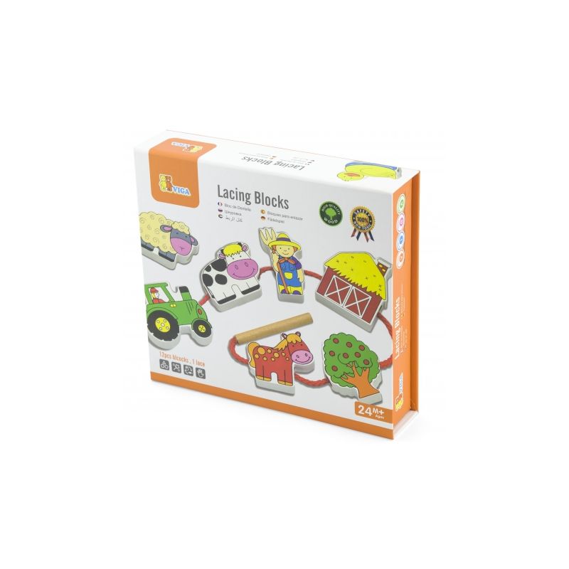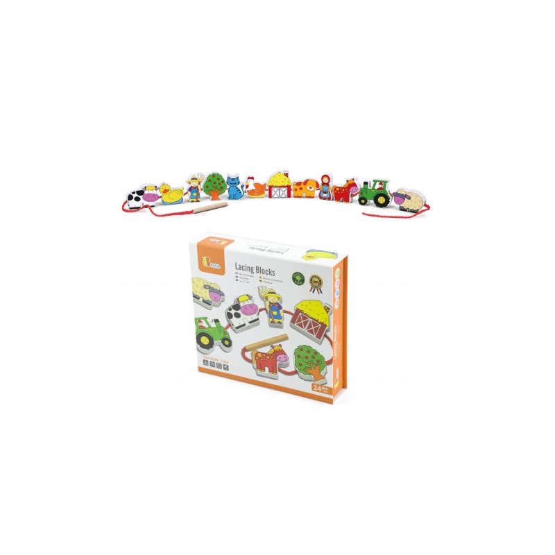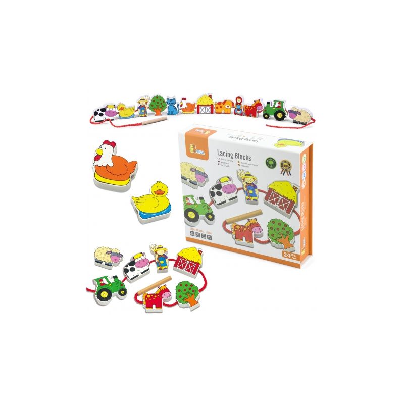 Viga Drewniana przeplatanka Klocki Farma do nawlekania