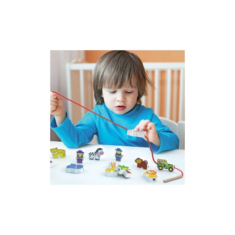 Klocki do nawlekania „Życie na Farmie” to idealna zabawka dla najmłodszych, która rozwija zdolności manualne i kreatywność. Drewniane elementy w kształcie zwierzątek, farmerów i budynków wprowadzają dziecko w świat życia na wsi, a kolorowe, nietoksyczne farby przyciągają uwagę i zachęcają do długiej zabawy.