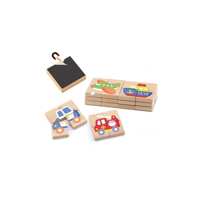 Viga Układanka drewniana puzzle magnetyczne - pojazdy Certyfikat FSC