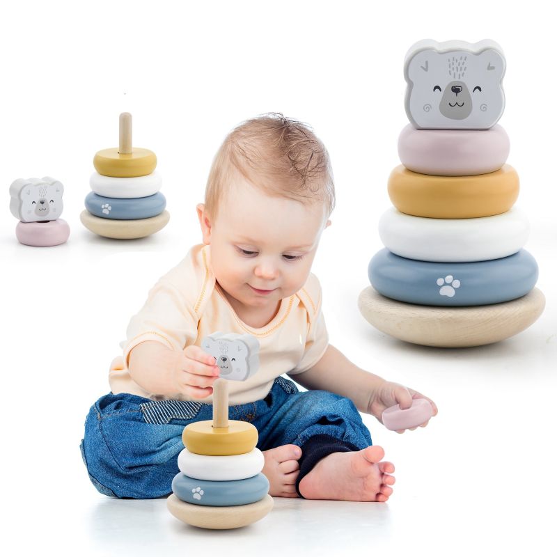 DREWNIANA PIRAMIDKA EDUKACYJNA MIŚ POLARNY VIGA TOYS DLA DZIECI