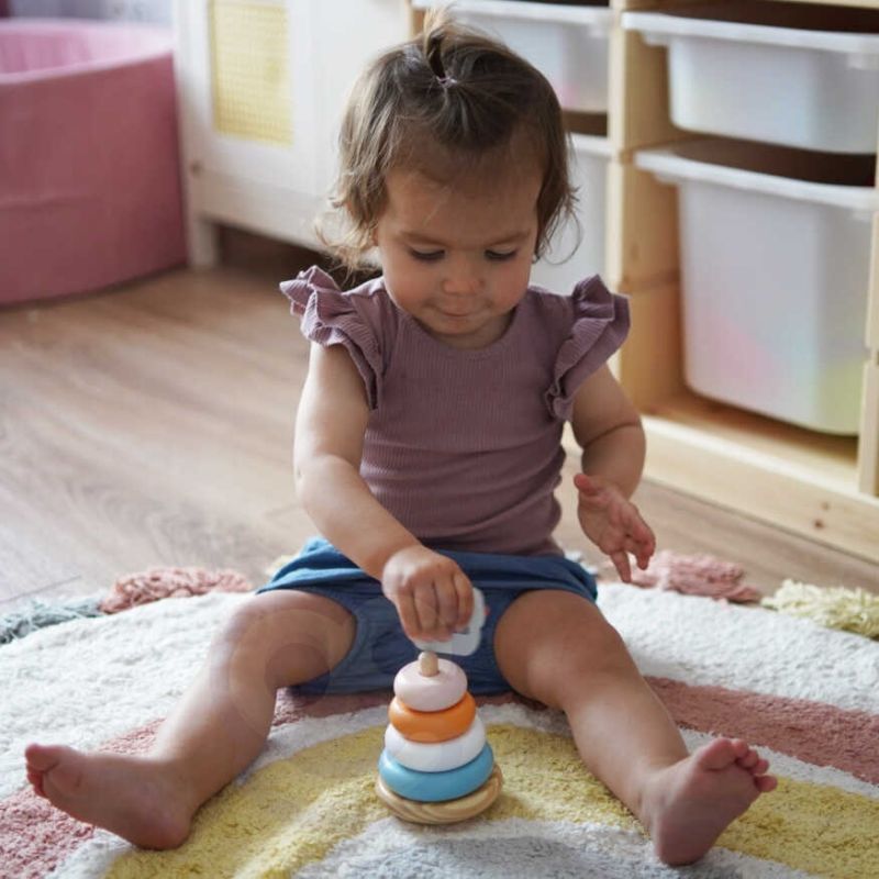 Piramidka Edukacyjna Miś od Viga to urocza, pastelowa zabawka, która wspiera rozwój maluszka poprzez układanie krążków różnej wielkości na drewnianym bolcu. Jeden z elementów ma kształt główki misia, co dodaje zabawie uroku i zachęca dziecko do eksperymentowania. Solidne, ekologiczne wykonanie zapewnia bezpieczeństwo i trwałość, a sama piramidka uczy rozpoznawania kolorów, rozwija koordynację oraz pobudza wyobraźnię.