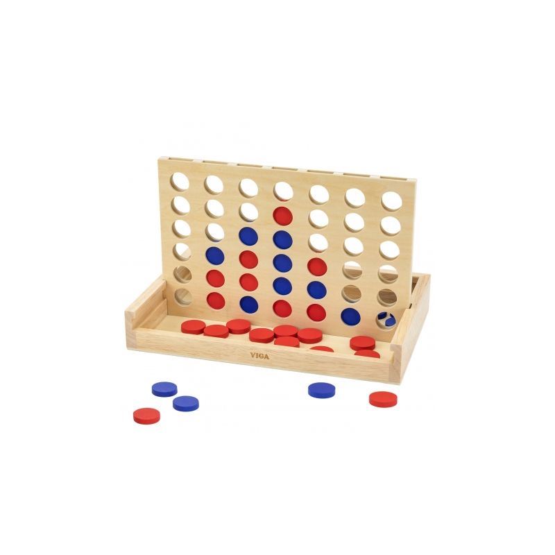 Drewniana gra logiczna 4 w rzędzie rozwija logiczne myślenie, koncentrację i planowanie strategiczne. Doskonała zabawa dla dzieci i całej rodziny.