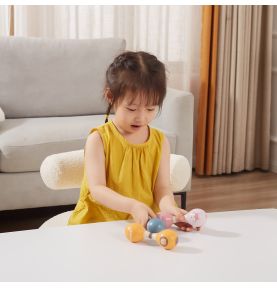 Zabawka wykonana została z naturalnego drewna i pomalowana bezpiecznymi, nietoksycznymi farbami w pastelowych kolorach charakterystycznych dla serii PolarB. Brak ostrych krawędzi sprawia, że jest w pełni bezpieczna dla najmłodszych.
