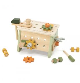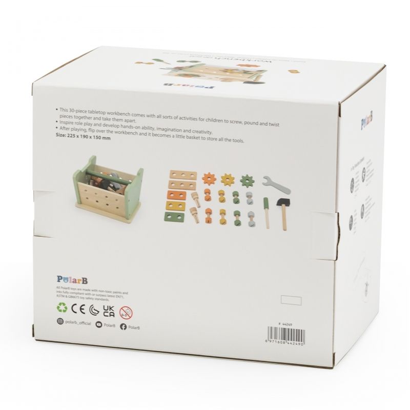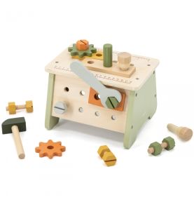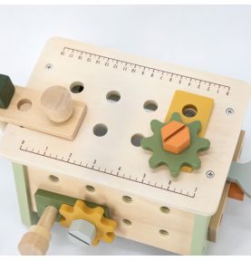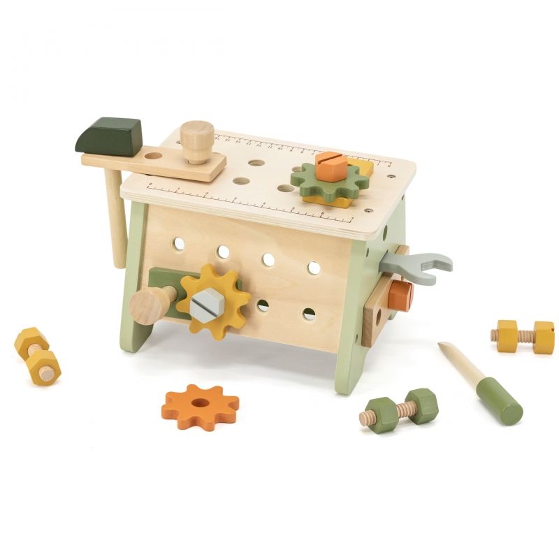 Warsztat można w łatwy sposób przekształcić w skrzynkę do przechowywania narzędzi – dzięki temu wszystkie elementy mają swoje miejsce, a dziecko może zabrać zabawkę wszędzie ze sobą. Zabawa w majsterkowanie pobudza wyobraźnię, uczy cierpliwości i rozwija koordynację wzrokowo-ruchową.