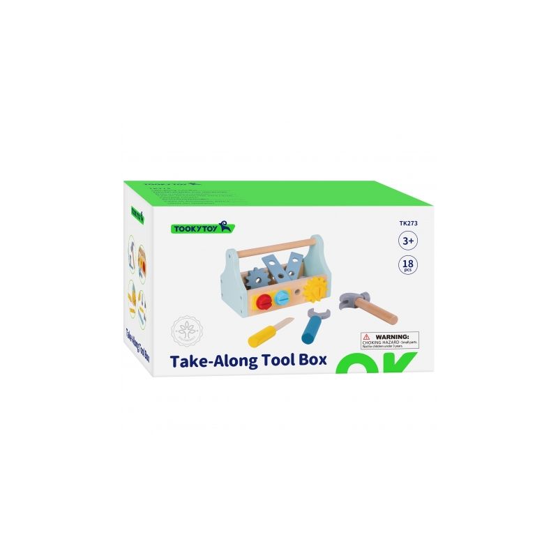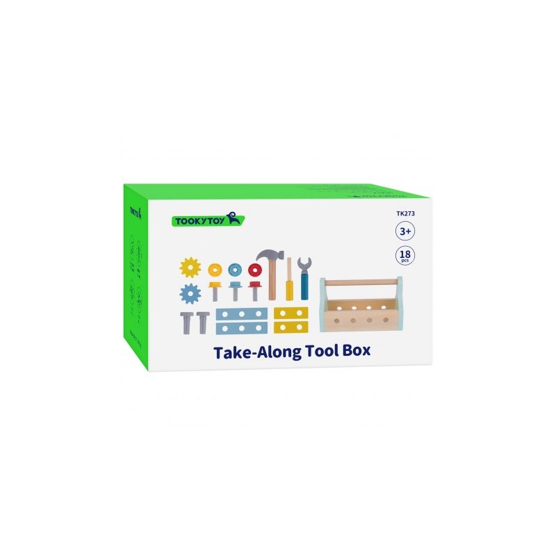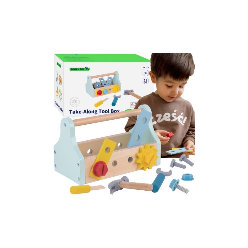TOOKY TOY Drewniana Skrzynka z Narzędziami Zestaw 18 el.
