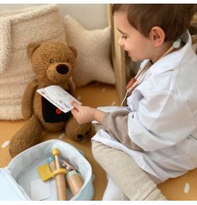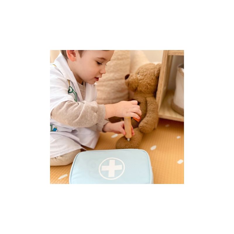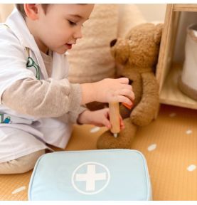 Zestaw Małego Lekarza to zabawka edukacyjna, która rozwija kreatywność i wyobraźnię poprzez zabawę w rolę lekarza, ucząc empatii i interakcji społecznych.