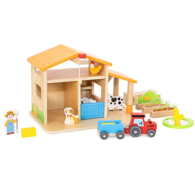 Drewniana, bogato wyposażona farma VIGA to idealna zabawka dla dzieci od 3 lat. Zawiera stodołę, figurki zwierząt, traktor, ogrodzenia i grządki do sadzenia. Rozwija kreatywność, empatię, motorykę i umiejętności społeczne poprzez zabawę w życie na wsi.