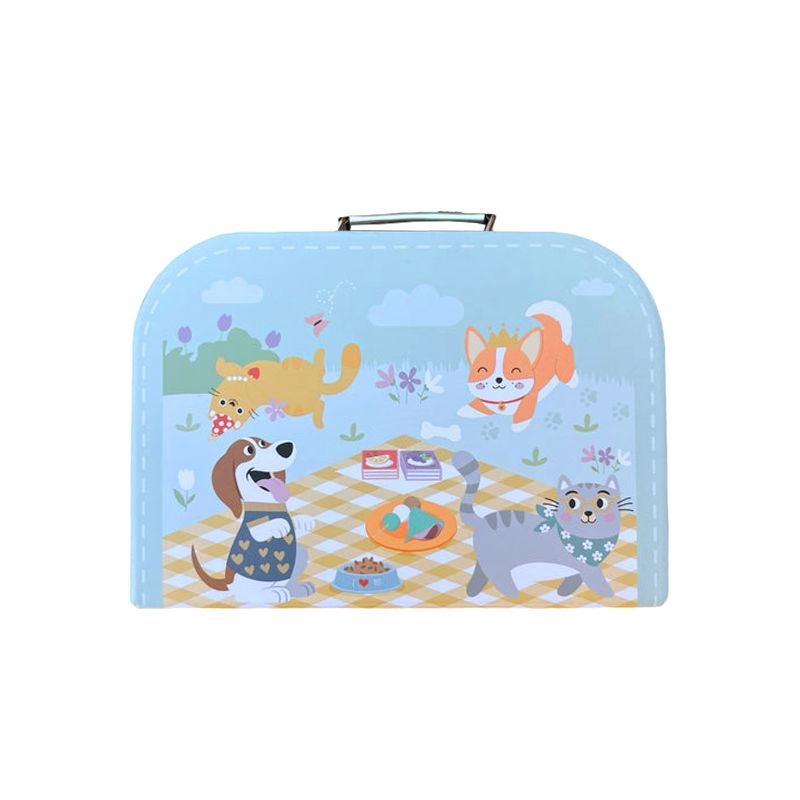• Zestaw w błękitnej walizce z motywem zwierzątek – łatwy do przenoszenia
