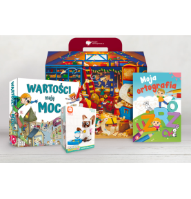 Paczka składa się z kufereczka z bajkową grafiką, edukacyjnej gry planszowej rozwijającej empatię i emocje, kreatywnych klocków konstrukcyjnych oraz ćwiczeń ortograficznych, które wspierają naukę pisania i rozwijają koncentrację.