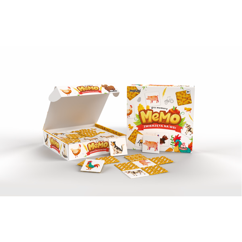 Na wsi życie płynie w swoim naturalnym rytmie, a jej mieszkańcami są zwierzęta, które mają swoje stałe miejsce w stajniach, kurnikach i zagrodach. „ Memo Zwierzęta na Wsi” zabiera graczy na tętniące życiem podwórko, gdzie spotkają najbardziej hałaśliwych i uroczych mieszkańców – od kur i krów, po owce, świnki i konie. W trakcie rozgrywki odkrywa się kafel ki, zapamiętuje ich położenie i szuka pasujących par, ćwicząc przy tym pamięć i spostrzegawczość. Celem jest odnalezienie jak największej liczby pasujących do siebie zwierzęcych duetów. To świetna okazja, by rozwinąć koncentrację i dobrze się bawić, zaglądając w każdy zakątek wiejskiej farmy. Kto szybciej odkryje, gdzie ukryła się owca? A gdzie leży para dla małych świnek?