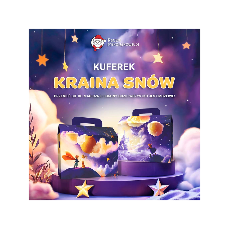 Kuferek prezentowy „Kraina Snów” przenosi dzieci w magiczną podróż pełną przygód i ilustracji inspirowanych Małym Księciem. Zachęca do kreatywnej zabawy i rozwija wyobraźnię najmłodszych.
