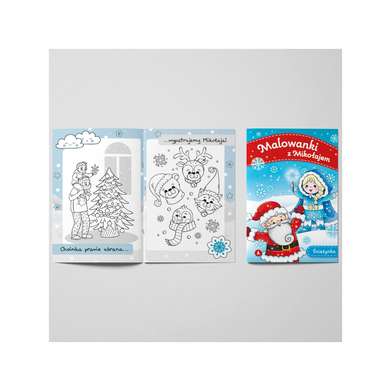Kolorowanka „Malowanki z Mikołajem. Śnieżynka” to zimowa propozycja pełna ilustracji do pokolorowania oraz świecących naklejek, które dodatkowo urozmaicają zabawę. Rozwija sprawność manualną i wyobraźnię dzieci od 4 lat, wprowadzając je w świąteczny nastrój.