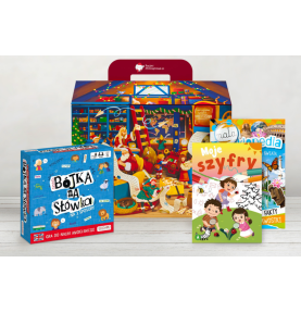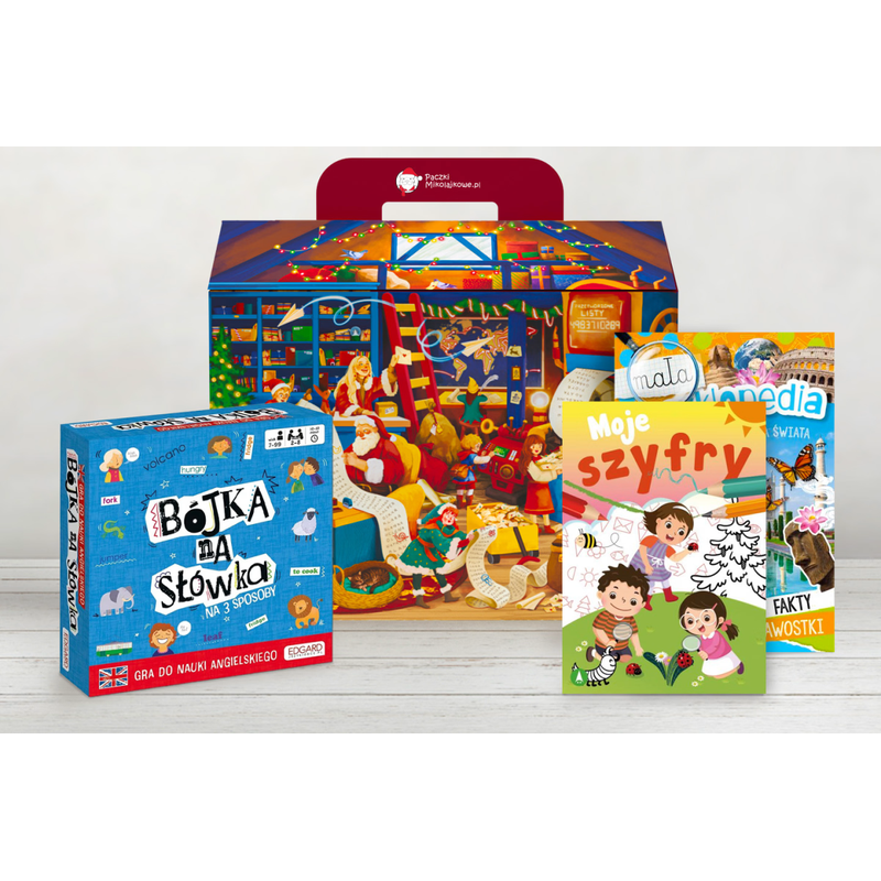 Paczka składa się z edukacyjnej gry, wspomagającej naukę języka angielskiego i pokazującej, że języka obcego można uczyć się w formie zabawy. W paczce znajduje się także ilustrowaną książeczkę edukacyjną, rozwijającą ciekawość świata i poszerzającą wiedzę dziecka w przystępny sposób. Całość uzupełniają ćwiczenia, pomagające w rozwijaniu logicznego myślenia oraz wspierające koncentrację.