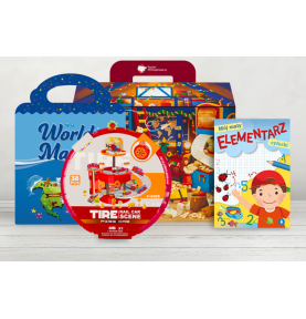 W paczce z zabawką znajduje się parking do złożenia w walizce, który daje radość z zabawy, wspiera rozwój zdolności manualnych i uczy planowania. Dodatkowo dołączono książeczkę z naklejkami wielorazowymi, zachęcającą do tworzenia własnych scenek i ćwiczącą sprawność manualną. Całość uzupełniają świąteczne ćwiczenia z naklejkami, pomagające w poznawaniu cyferek oraz rozwijaniu koncentracji.