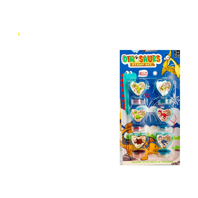 - Zestaw stempelków dla dzieci – 6 pieczątek z motywem dinozaurów