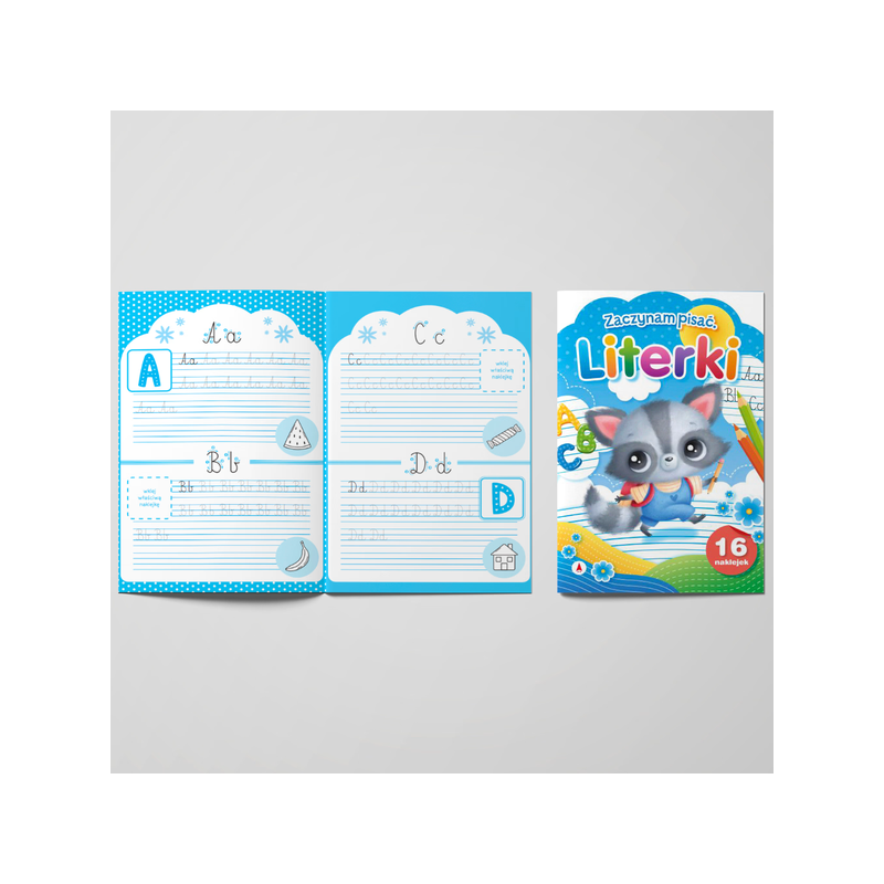 - Zaczynam pisać Literki - zeszyt ćwiczeń do nauki pisania literek z naklejkami