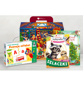 Paczka zawiera puzzle edukacyjne pomagające w poznawaniu literek i pierwszych krokach w nauce czytania, świąteczną bajeczkę umilającą wspólny czas z rodzicami i budującą nawyk czytania oraz ćwiczenia z zadaniami grafomotorycznymi, które wspierają kształtowanie estetycznego pisma.