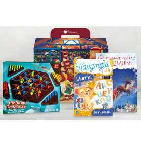 W paczce znajduje się edukacyjna gra logiczna ucząca strategicznego myślenia i zapewniająca dobrą zabawę, świąteczna bajeczka wprowadzająca w magiczny nastrój i rozwijająca wyobraźnię oraz ćwiczenia z naklejkami, które przygotowują dziecko do nauki estetycznego pisma.