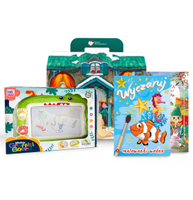W paczce znajduje się zestaw kreatywny rozwijający zdolności manualne i wyobraźnię, bajeczka budująca nawyk wspólnego czytania i umilająca czas z rodzicami oraz malowanki wodne, które inspirują do twórczej zabawy w nowej formie.