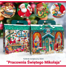 Kuferek 2024 pozwala młodszym i starszym odkryć tajemnicę pracowni św. Mikołaja. Ozdobiony barwnymi ilustracjami, które ożywają z każdą chwilą, przenoszą w sam środek tej magicznej krainy. Każdy detal na kufrze opowiada swoją własną, urokliwą historię. Stanowi solidne i łatwe w złożeniu opakowanie, które pomieści najpiękniejsze prezenty dla dzieci. Jego wymiary to 30x36,5x10 cm. Kuferek wyposażony jest w praktyczną rączkę (wysokość 6 cm).