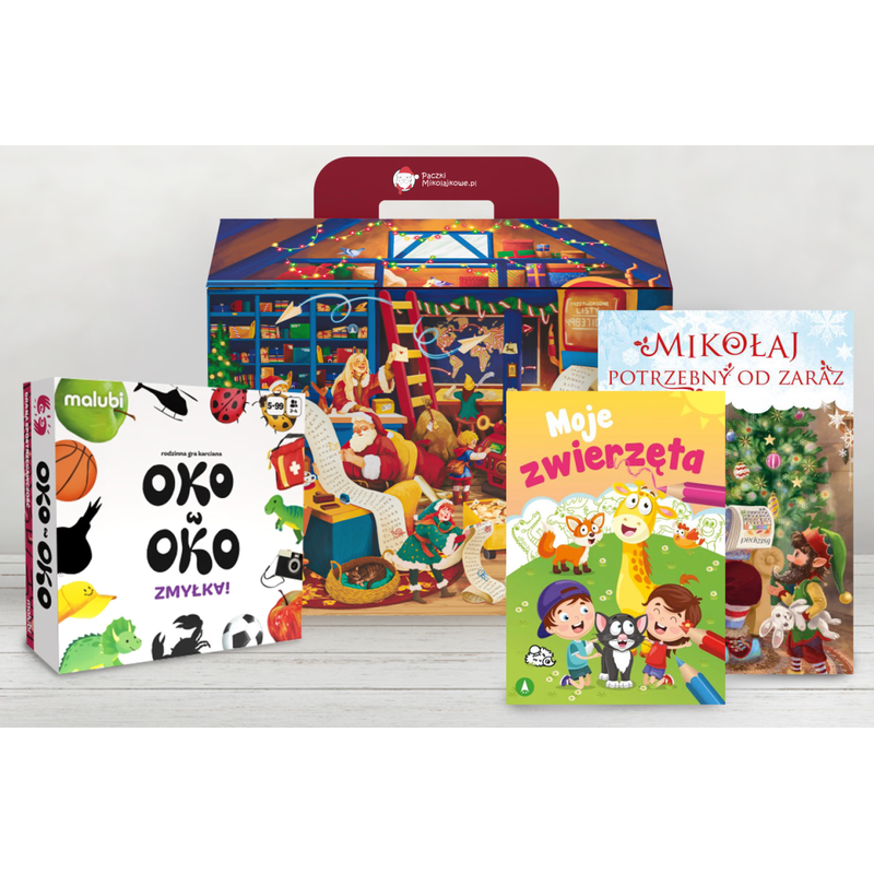 W paczce znajduje się edukacyjna gra logiczna rozwijająca umiejętność logicznego myślenia, a także ucząca cierpliwości i koncentracji, bajeczka wprowadzająca świąteczny nastrój i pobudzająca wyobraźnię oraz ćwiczenia z naklejkami, które wspierają sprawność manualną, a przy tym rozwijają uwagę i cierpliwość dziecka.