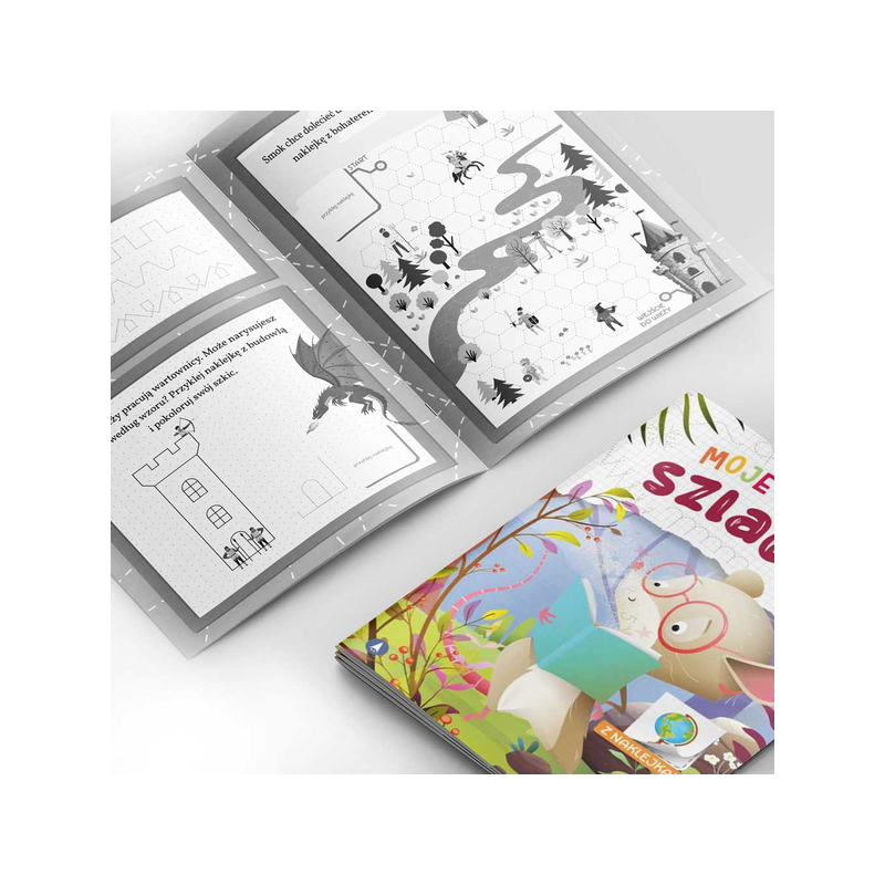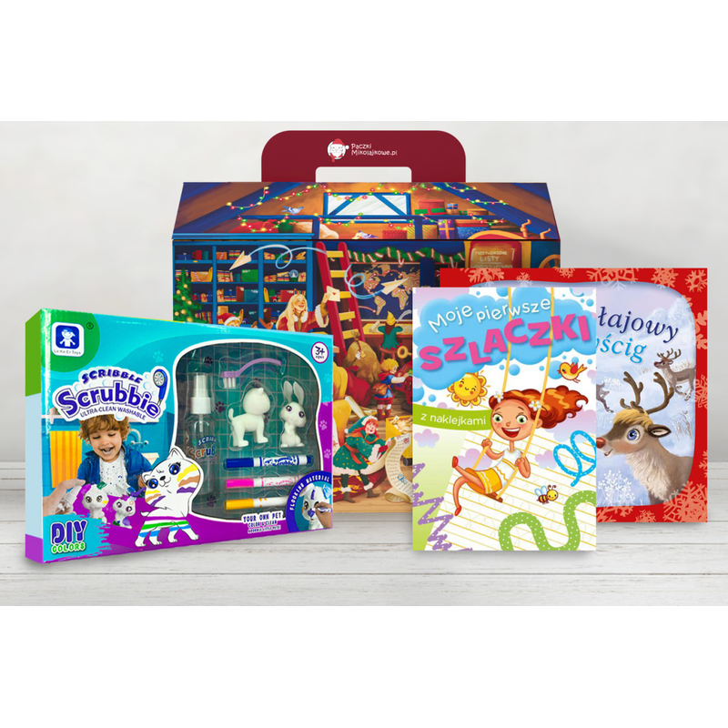 W paczce znajduje się zestaw kreatywny do malowania, który wspiera zdolności manualne, bajeczka pobudzająca fantazję i ciekawość świata oraz ćwiczenia przygotowujące do nauki pisania literek i cyferek.
