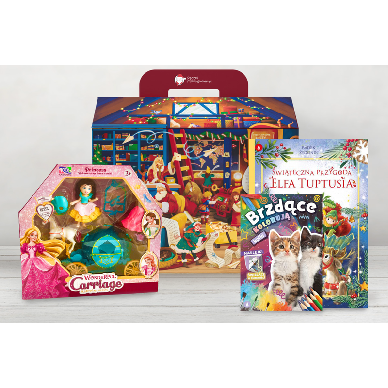 Księżniczka z Karocą to zestaw, który przeniesie każde dziecko w magiczny świat bajek - doskonały pomysł na paczkę mikołajkową dla dzieci. W pudełku znajduje się piękna księżniczka z kilkoma uroczymi ubrankami, elegancka karoca oraz koń, który poprowadzi ją ku niezwykłym przygodom. Dzięki różnym strojom laleczka może przygotować się na każdy wyjątkowy moment - od królewskiego balu po romantyczną przejażdżkę pod gwiazdami. Karoca z koniem dodaje zabawie uroku, a dziecko może tworzyć niezliczone historie pełne magii i wyobraźni. To prezent mikołajkowy do paczki dla dziewczynki, który sprawdzi się zarówno w przedszkolu, jak i w szkole. Zestaw rozwija kreatywność, umiejętność opowiadania historii i zachęca do wspólnej zabawy. Idealny także jako element większych świątecznych zestawów upominków dla dzieci czy paczki świątecznej dla małych marzycieli. Zabawka przeznaczona dla dzieci od 3. roku życia.