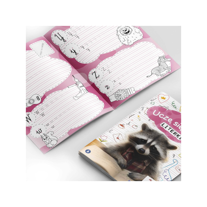 Pisz po śladzie i samodzielnie. Każdą literkę opatrzono wskazówkami, które pomogą sprawnie poprowadzić rączkę. Pisanie po śladzie ułatwi samodzielne odwzorowanie kształtów liter.