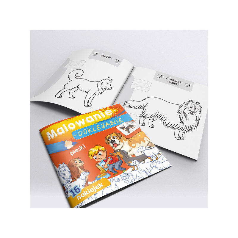 Uporządkowana tematycznie seria malowanek z naklejkami.