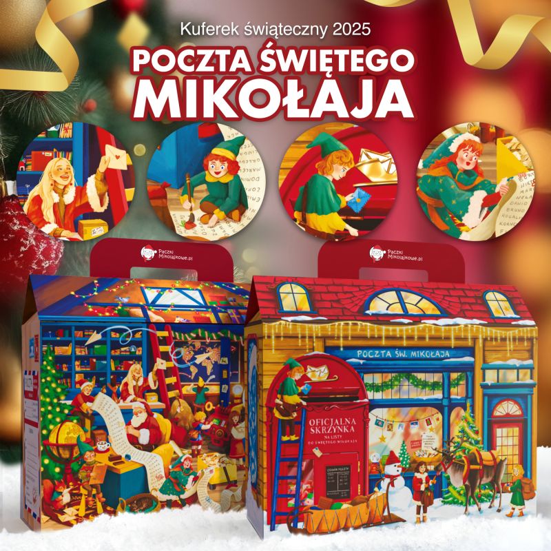 Kuferek 2025 „Poczta Mikołaja” to wyjątkowa paczka mikołajkowa z autorską, bajkową grafiką, która przenosi dzieci w magiczny świat listów do Świętego Mikołaja. Kolorowa ilustracja pełna świątecznych szczegółów zachwyci każdego malucha, a specjalna etykieta pocztowa do samodzielnego wypełnienia pozwoli poczuć się częścią tej niezwykłej historii. Kuferek o wymiarach 30 × 26 × 10 cm z rączką (6 cm) sprawdzi się także po świętach - jako teczka na rysunki, domek dla lalek czy skrzynia skarbów.