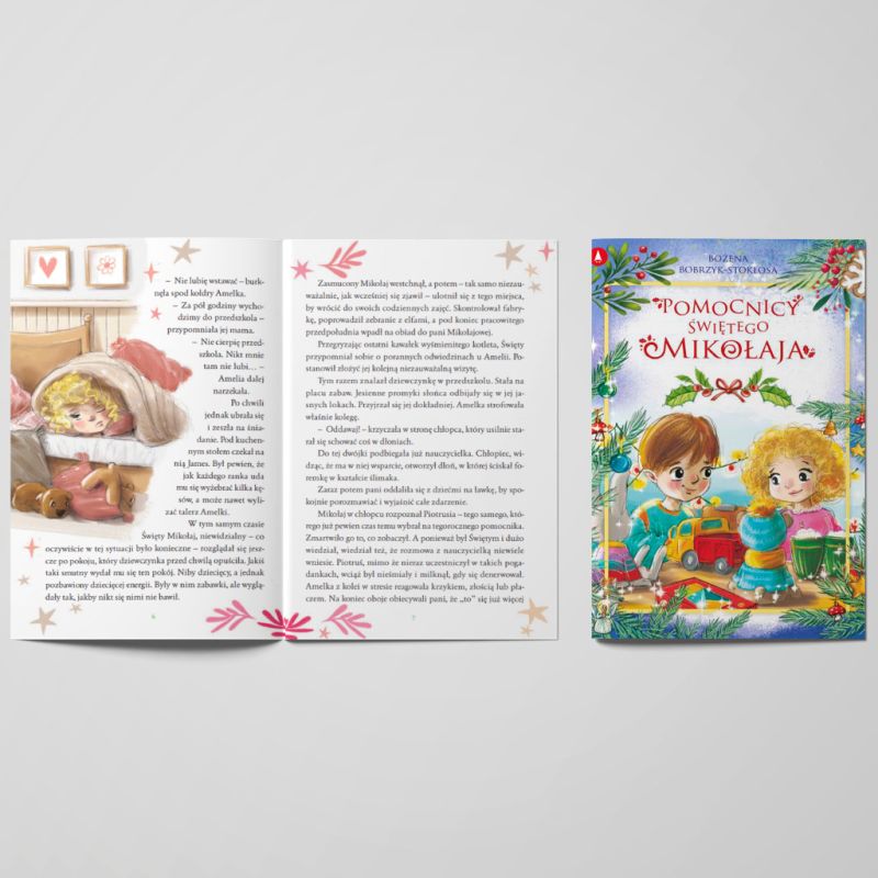 Opowiadanie Pomocnicy Świętego Mikołaja to pięknie ilustrowana, pełna świątecznego klimatu historia stworzona z myślą o dzieciach w wieku przedszkolnym. Ciepła fabuła pokazuje, że przyjaźń i współpraca potrafią zdziałać cuda, a wspólne przygotowania do świąt stają się jeszcze piękniejsze. Miękka oprawa i przystępna treść czynią tę bajeczkę idealną do wspólnego czytania w domu i w przedszkolu. To doskonały pomysł na prezent do paczki świątecznej oraz produkt do paczek mikołajkowych dla dzieci, który wniesie do paczek magię Bożego Narodzenia. Dzięki wyjątkowej treści książeczka sprawdzi się jako uniwersalny prezent mikołajkowy do paczek dla najmłodszych, wzbogacając świąteczne zestawy upominkowe i sprawiając dzieciom mnóstwo radości.