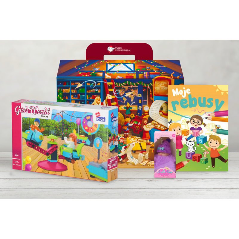 Paczka składa się z zestawu klocków konstrukcyjnych, estetycznego breloczka oraz ćwiczeń z łamigłówkami, które rozwijają kreatywność, wyobraźnię, myślenie analityczne i umiejętność rozwiązywania problemów.