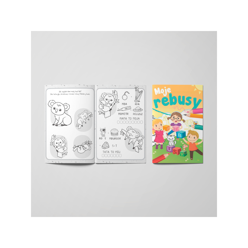 „Moje rebusy” to zeszyt z zagadkami i szyfrowanymi historyjkami, który łączy zabawę z nauką. Zadania rozwijają wyobraźnię, logiczne myślenie i spostrzegawczość, sprawdzając się zarówno podczas domowej zabawy, jak i w zajęciach edukacyjnych w szkołach.
