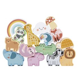 15 drewnianych figurek (zwierzątka, grzybek, tęcza, chmurka)