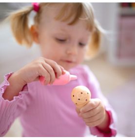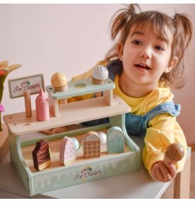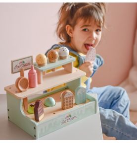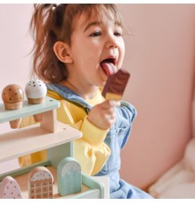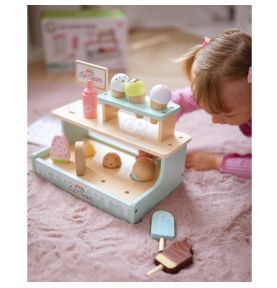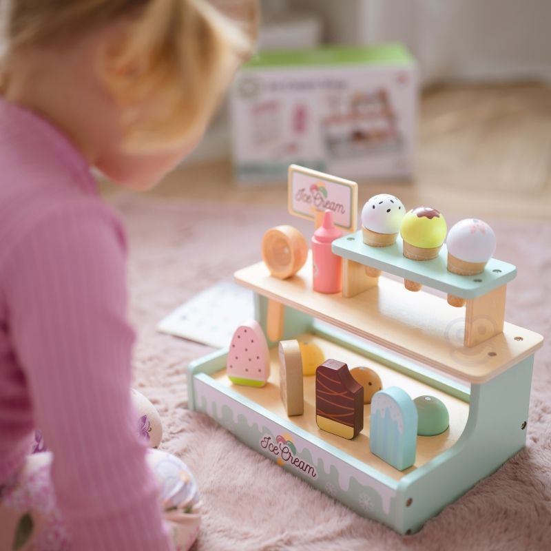 Drewniany Stragan z Lodami z serii GREEN od marki WOOPIE to wymarzona, pastelowa zabawka dla małych cukierników, która inspiruje do kreatywnej zabawy w sklep. Zestaw zawiera drewniany stojak, lody na patyku, wafelki, menu oraz specjalną łyżkę do serwowania sześciu realistycznych, magnetycznych gałek lodów. Ta wykonana z bezpiecznego drewna zabawka w doskonały sposób rozwija zdolności manualne, wyobraźnię oraz umiejętności społeczne poprzez odgrywanie ról.