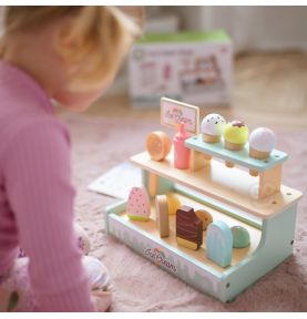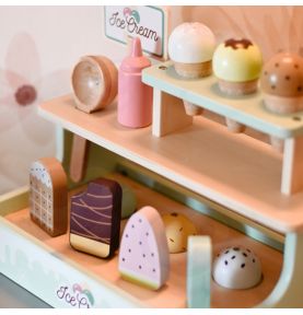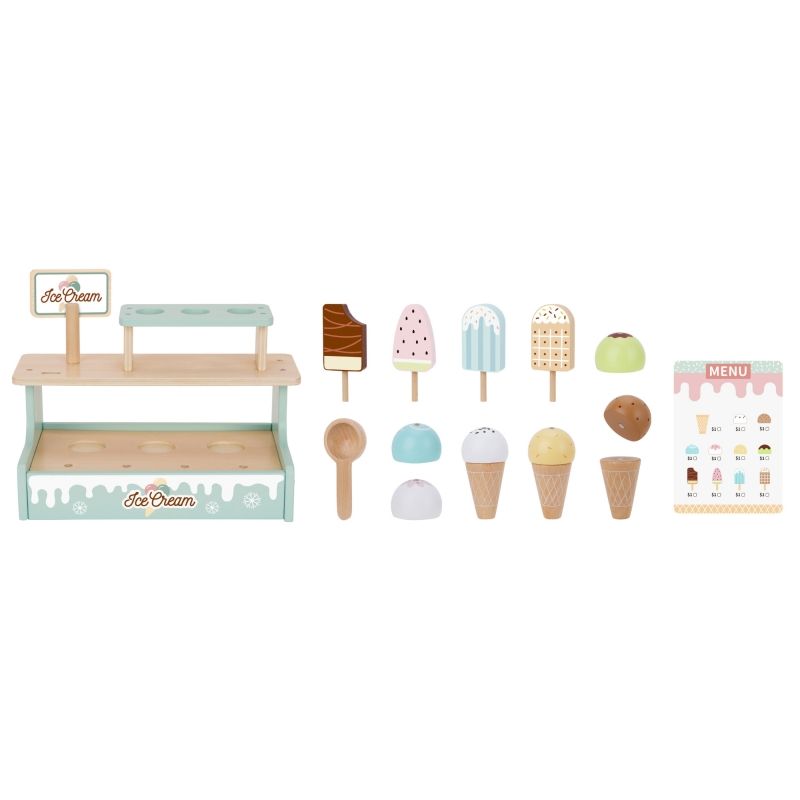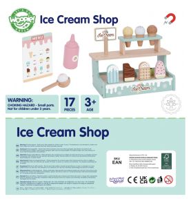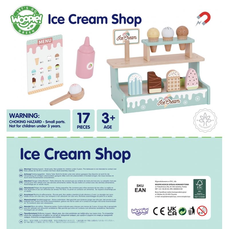 WOOPIE GREEN Drewniana Lodziarnia Sklepik Zestaw z Lodami Stragan 16 EL