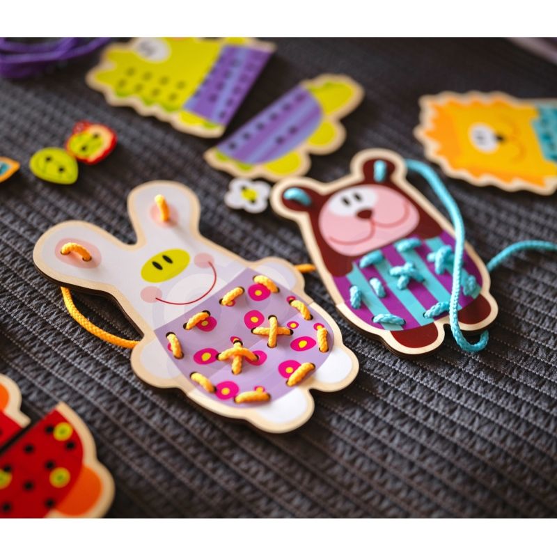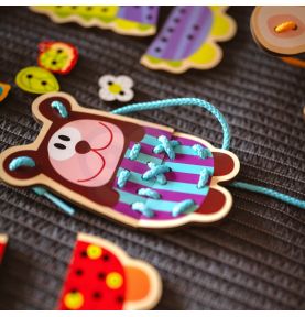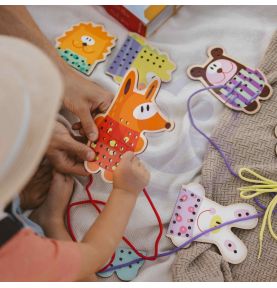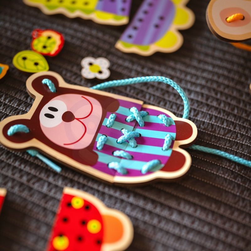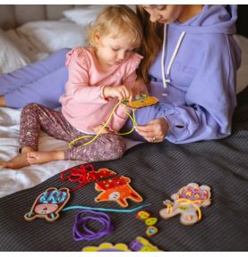Zręczność – precyzyjne ruchy przy nawlekaniu ćwiczą sprawność manualną i koordynację ręka-oko.