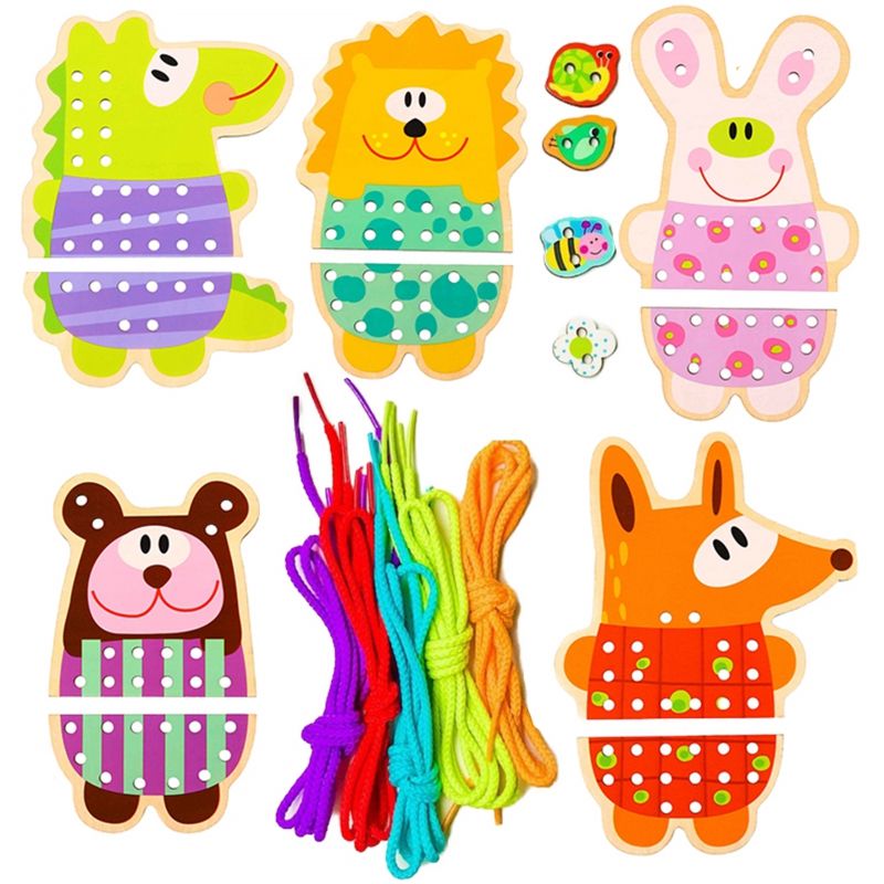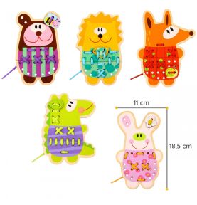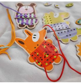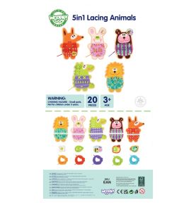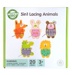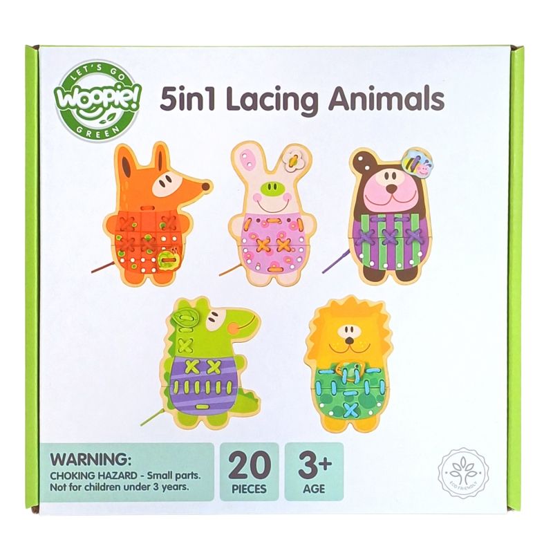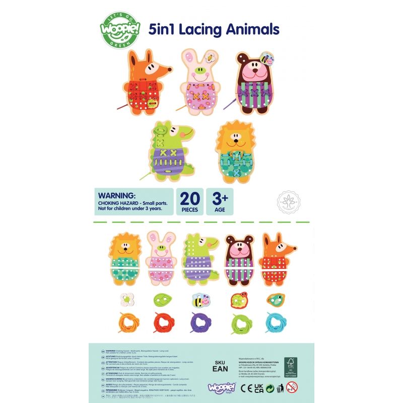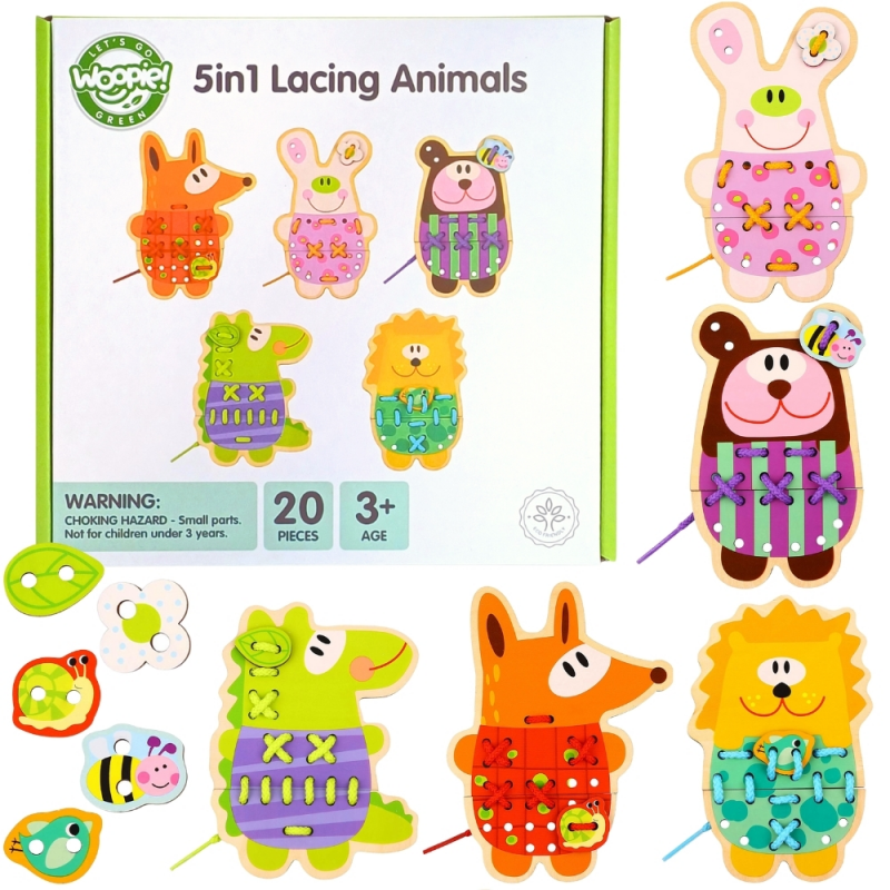 Drewniane Zwierzątka do Nawlekania 5w1 od marki WOOPIE GREEN to uroczy i edukacyjny zestaw, który przenosi dzieci do świata kreatywnej zabawy. Kolorowe, drewniane zwierzątka z otworkami do nawlekania zachęcają maluchy do ćwiczenia zręczności i rozwijania motoryki. Dodatkowym, niezwykle angażującym elementem jest możliwość „przyszycia” detali do każdego zwierzaka – to świetne przygotowanie do nauki pisania i pracy z drobnymi przedmiotami.