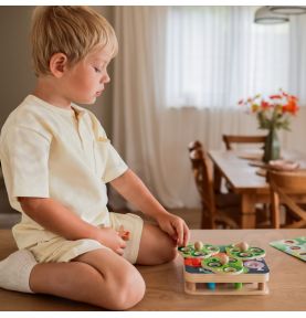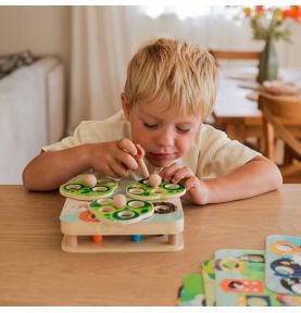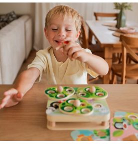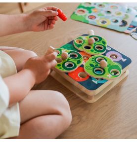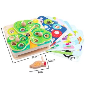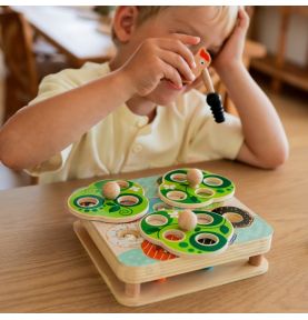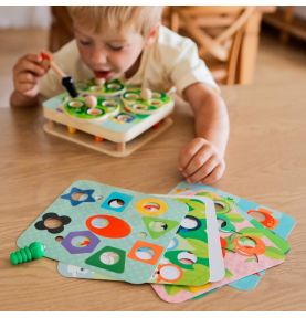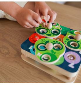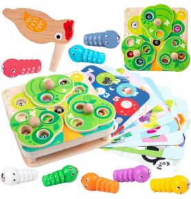 Kolorowa Gra Magnetyczna "Złap Gąsienicę" od marki TOOKY TOY to fantastyczna zabawka, która łączy w sobie ćwiczenie zręczności z wszechstronną edukacją. Dziecko za pomocą magnetycznego dzięcioła "łowi" gąsienice z drewnianej podstawy, a dzięki dołączonym 8 wymiennym planszom może jednocześnie uczyć się kolorów, liczb, kształtów i zwierząt. Ta wielofunkcyjna, wykonana z wysokiej jakości drewna zabawka w doskonały sposób rozwija motorykę, koordynację ręka-oko i koncentrację, zapewniając mnóstwo satysfakcjonującej zabawy.