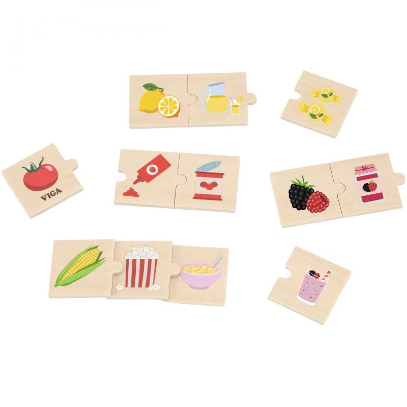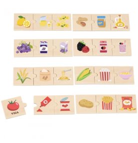 Zestaw Puzzli "Odkrywaj Związki Między Naturą a Jedzeniem" od marki Viga uczy dzieci w super zabawny sposób, jak produkty roślinne są przetwarzane na pyszne produkty spożywcze, które znają z własnego stołu. Dopasowując rośliny i zbiory do produktów, takich jak popcorn, płatki zbożowe, masło orzechowe czy makaron, maluchy odkrywają, skąd pochodzą te codzienne przysmaki!