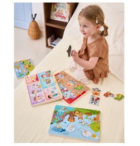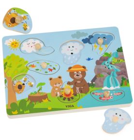 Gotowi na leśną wyprawę bez wychodzenia z domu?! Puzzle Dźwiękowe "Odkrywamy Naturę" od marki Viga to rewelacyjna układanka, która łączy zabawę w dopasowywanie z fascynującym światem dźwięków przyrody! W zestawie znajduje się drewniana plansza i kolorowe puzzle z pinezkami, przedstawiające zjawiska przyrodnicze. Gdy maluch dopasuje element we właściwe miejsce, usłyszy realistyczny dźwięk, np. szum wiatru czy śpiew ptaków, co czyni zabawę mega ekscytującą i rozwija ciekawość świata, słuch oraz zdolności manualne!