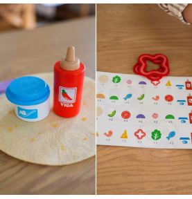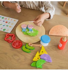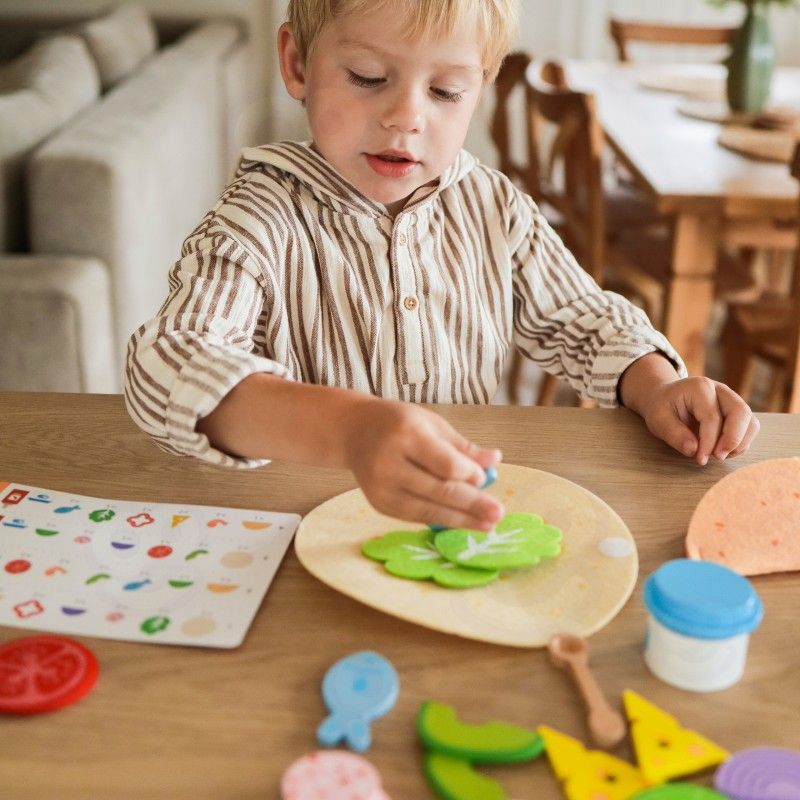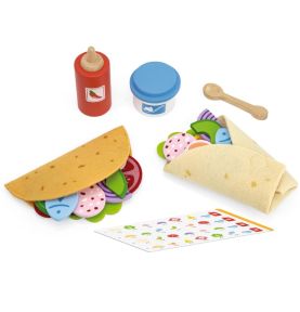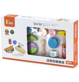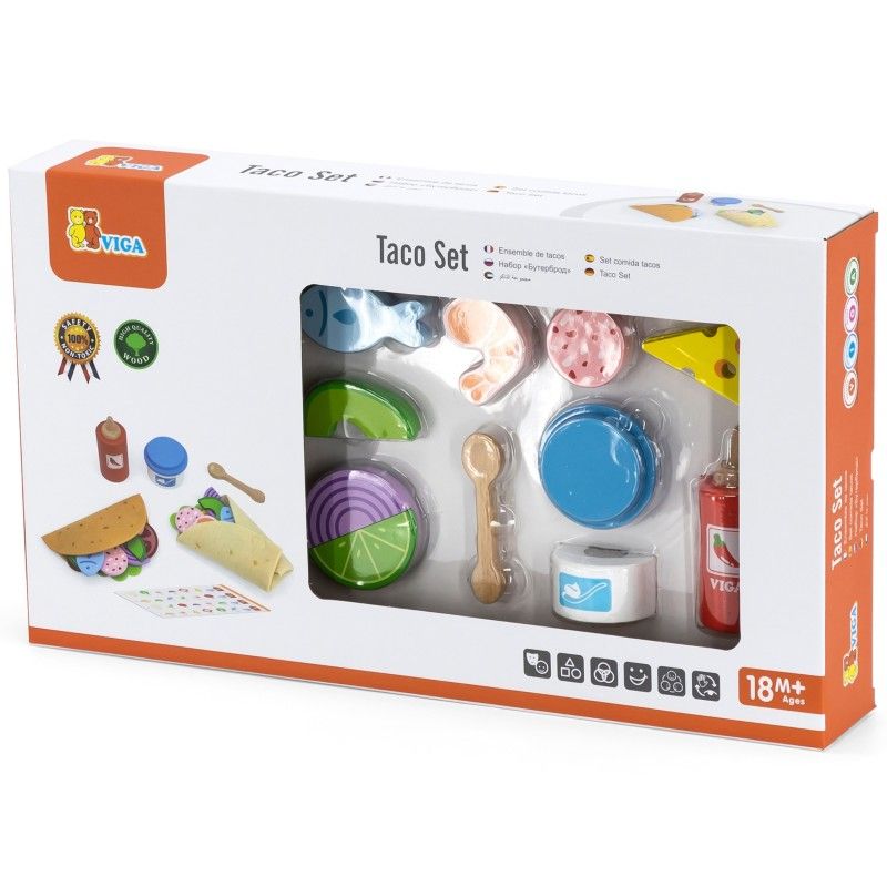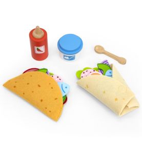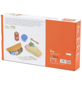 Gotowi na FIESTĘ SMAKÓW?! Zestaw Meksykańskich Potraw Taco i Burrito od marki VIGA to absolutna petarda dla małych kucharzy! Ten bogaty, 27-elementowy komplet zawiera wszystko, czego potrzeba, by otworzyć własną restaurację: twardą muszlę taco, mięciutką filcową tortillę, mnóstwo drewnianych składników (jak awokado, ser czy ryba!) oraz sosy! To rewelacyjna zabawka do odgrywania ról, która w genialny sposób rozwija kreatywność, zdolności manualne i uczy komponowania posiłków już od 18 miesiąca życia!