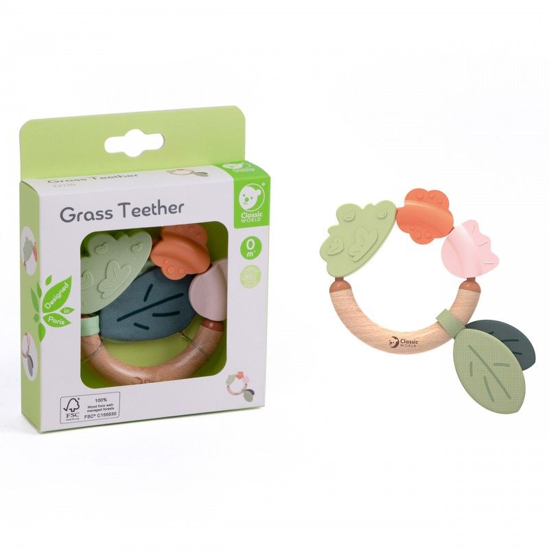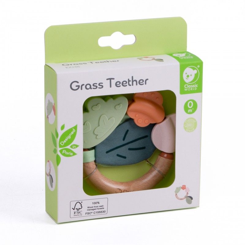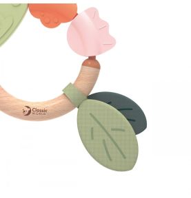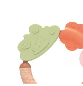 Połączenie naturalnego drewna i miękkiego silikonu pobudza zmysły oraz zachęca do odkrywania świata, stanowiąc doskonały pierwszy gryzak i grzechotkę dla każdego maluszka. Elementy inspirowane naturą oraz kolorowe pastelowe kolory przyciągają uwagę dziecka.