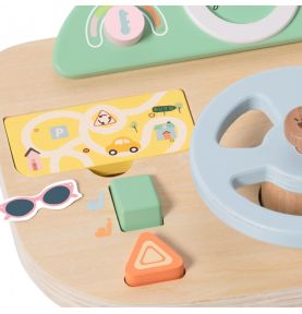 Zabawa nie tylko dostarcza radości, ale również rozwija dziecięcą wyobraźnię, motorykę oraz logiczne myślenie. Solidna, drewniana konstrukcja sprawia, że panel jest bezpieczny oraz trwały, a liczne kolorowe akcesoria uczynią każdą wycieczkę niezapomnianą.