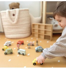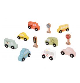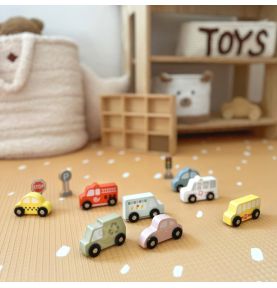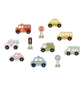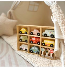 Gotowi na totalny odjazd w pastelowym mieście?! 🚗💨 Drewniany Zestaw Pojazdów i Znaków Drogowych od marki Tooky Toy to absolutna petarda i wymarzony zestaw dla każdego małego fana motoryzacji! Ten 11-elementowy komplet zawiera aż 8 odjazdowych pojazdów (jak food truck, straż pożarna czy policja!) i 3 znaki drogowe. A najlepsze? Wszystko zapakowane jest w solidne, drewniane pudełko z przegródkami – idealne na prezent i do trzymania porządku! To rewelacyjny trening wyobraźni, zdolności manualnych i super wstęp do nauki zasad ruchu drogowego!