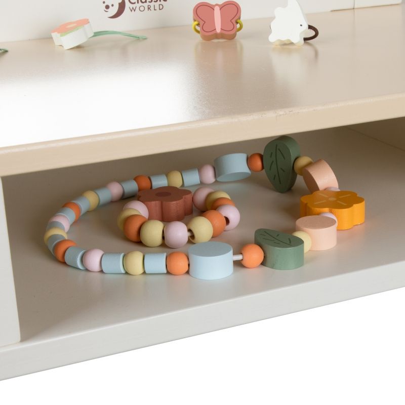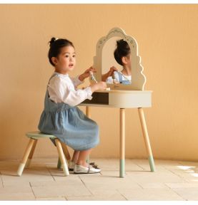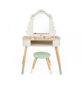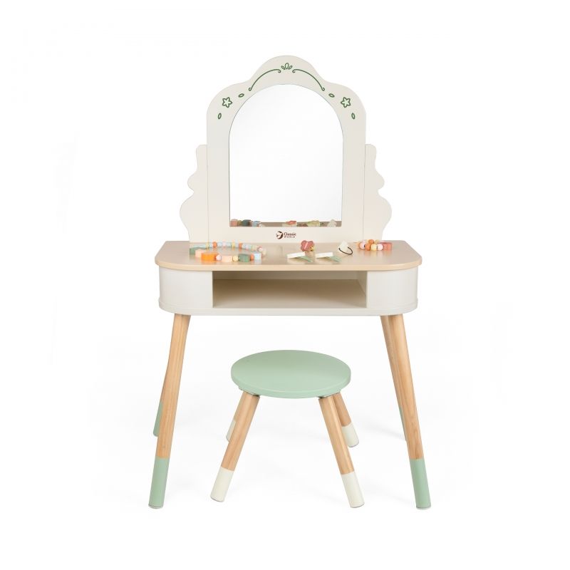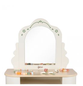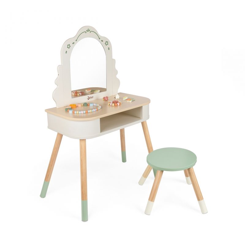 Czas na totalny GLOW UP! 💖 Drewniana Toaletka z Lustrem od marki Classic World to absolutna petarda i wymarzony kącik piękności dla każdej małej damy! Ten rewelacyjny zestaw w pastelowych kolorach to nie tylko piękne biurko z lustrem i szufladką, ale także wygodny stołeczek oraz pakiet startowy biżuterii! To genialna, wykonana z drewna zabawka, która w fantastyczny sposób rozwija wyobraźnię, kreatywność i zdolności manualne poprzez super zabawę w odgrywanie ról!